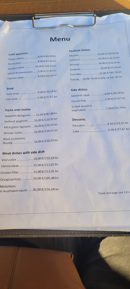 Introducing "Konoba Kala," a charming gem located in Povlja, Croatia, known for its delightful culinary offerings and warm atmosphere. The menu predominantly showcases fresh seafood, where patrons rave about the quality and flavor of dishes like grilled octopus and homemade fish soup. One review highlights the juicy chicken fillet paired with perfectly fried fries, showcasing the restaurant's commitment to delivering satisfying meals at reasonable prices.